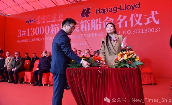教母Brenda Hojgaard女士将新船命名为“Humboldt Express”号,并祝愿其在今后的航行中永远平安,为船东带来源源不断的财富。