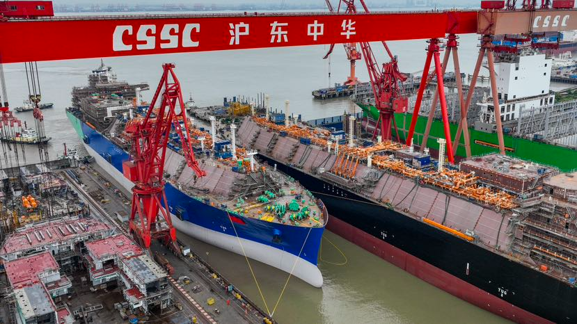 据悉,此轮出坞的两艘船为沪东中华自主研发设计的第五代“长恒系列”LNG船,总长299米,型宽46.4米,型深26.25米。搭载多项低碳节能技术,与上一代LNG船相比,具有综合能耗低、低温性能好、载货能力强、操控运维巧等特点,单日航行碳排放可减少10吨以上,通达全球各大洲120个LNG岸站,具有卓越的全球通航性。