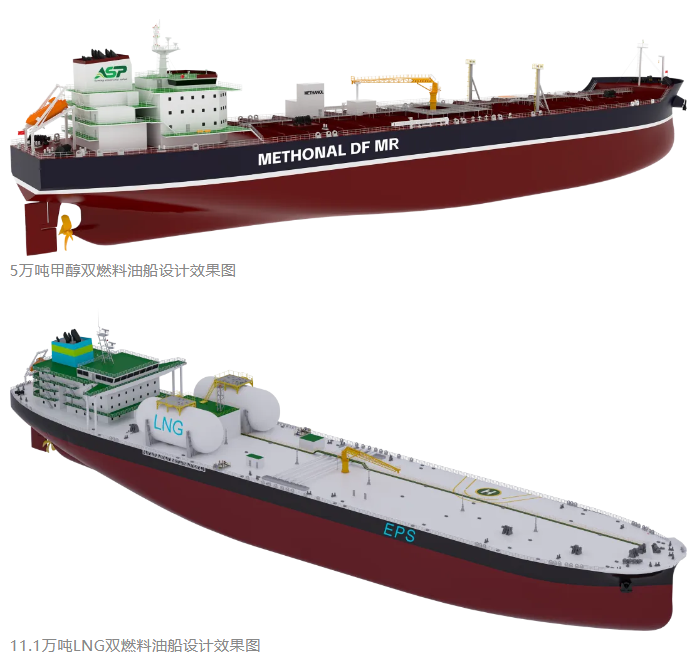 本项目两个船型是广船国际自主设计研发的新一代LNG双燃料LRⅡ型油船和甲醇双燃料MR型油船,以“绿色环保”为指引,遵循“高效、环保、安全”的设计生产建造理念,是广船国际践行绿色低碳发展理念的又一力作。至此,广船国际的甲醇双燃料及LNG双燃料船型订单总量已突破80艘。
