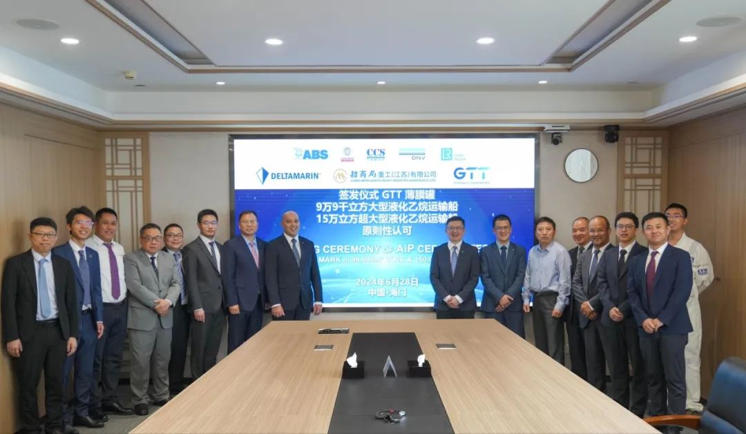 6月28日,由招商局重工(江苏)有限公司与Deltamarin设计公司联合研发的15万立方超大型乙烷运输船(ULEC)和9万9千立方大型乙烷运输船(VLEC),同时获得中国船级社、英国劳氏船级社、挪威船级社、美国船级社和法国船级社等五大国际船级社颁发的原则性认可(AIP)证书。两型船的成功研发,标志着招商工业海门基地在能源及化工运输船领域又取得了新的突破性进展。