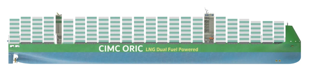 该型船是中集船舶海洋工程设计研究院研发设计的最新一代超大型双燃料动力集装箱船,具有完全自主知识产权。该型船采用双岛式布置,总长366米,型宽58.8米,兼顾高载重量与低油耗、超大尺度与更低建造成本的平衡,契合船东低碳、降速、减排的经济性营运需求。该型船配备了高效舵、舵球、节能导管及挡风罩等多种节能优化设备,以及大功率轴带发电机、岸电系统及能效监测系统等,具备清洁环保、低碳排放等特性;船舶能效设计指数(EEDI)及碳强度指标(CII)等均处于同级别船型的领先水平。