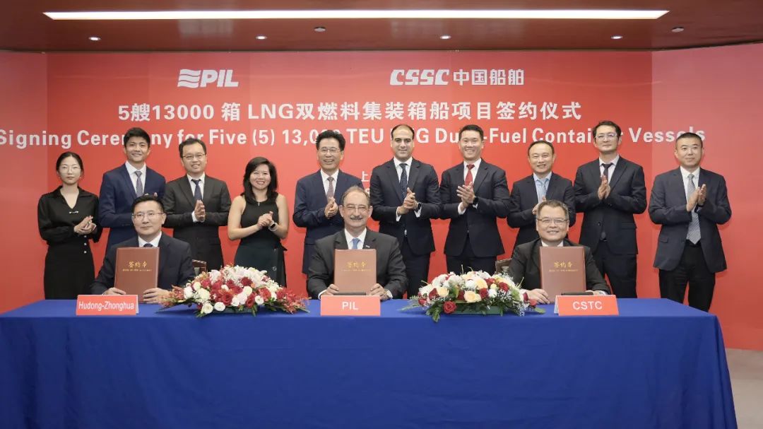 8月19日,成人电影 有限公司旗下沪东中华造船(集团)有限公司联合中国船舶工业贸易有限公司与太平船务有限公司正式签订5艘13000TEU液化天然气(LNG)双燃料动力大型集装箱船建造合同。这是继今年6月签订4艘14000TEU甲醇燃料预留大型集装箱船订单后,沪东中华承接的又一批大型箱船订单。至此,沪东中华已累计完工和手持大型集装箱订单近百艘,位居全球各大船厂前列,持续巩固其在超大型、大型集装箱船建造领域的领军地位。
