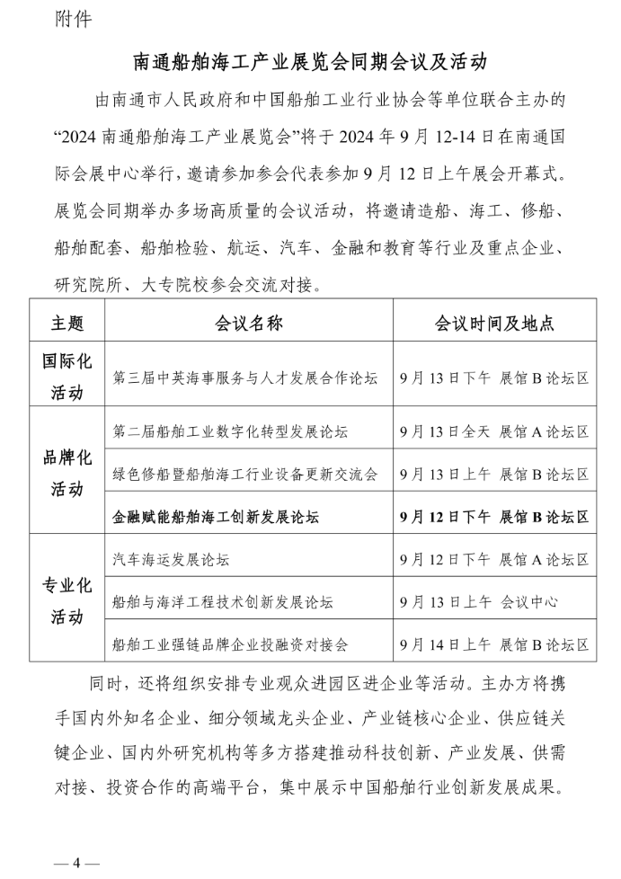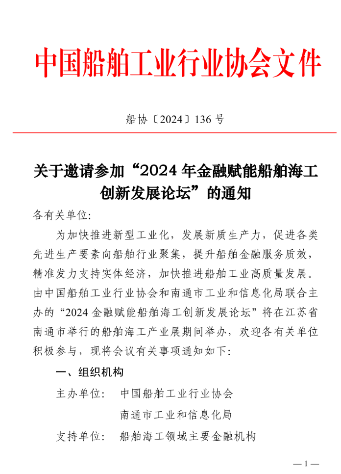 关于邀请参加“2024年金融赋能船舶海工创新发展论坛”的通知