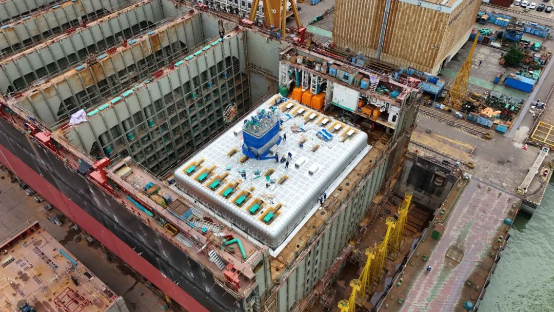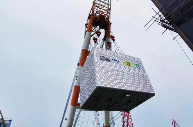 8月19日,中国船舶广船国际为MSC地中海航运集团建造的首艘16000TEU双燃料集装箱船完成B型LNG燃料舱吊装。该B型LNG燃料舱舱容为13000立方米,重达1200吨,为目前国内船用最大的B型LNG燃料单舱。