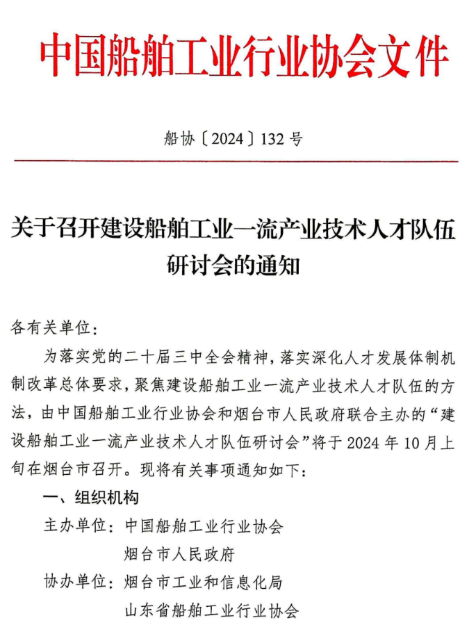 关于召开建设船舶工业一流产业技术人才队伍研讨会的通知