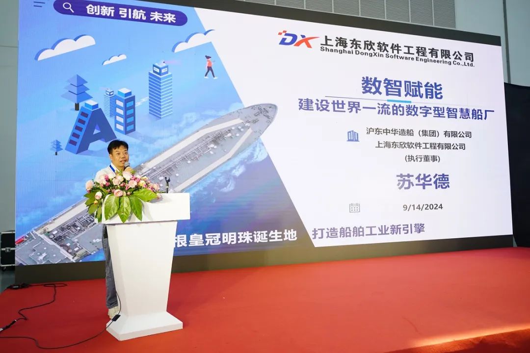 上海东欣软件工程有限公司执行董事苏华德也发表了《数智赋能、建设世界一流的数字型智慧船厂》的演讲。他分享了数字化如何助力船厂提升效率、降低成本,并迈向智能化、绿色化的未来,为船舶工业的数字化转型提供了宝贵的经验和启示。