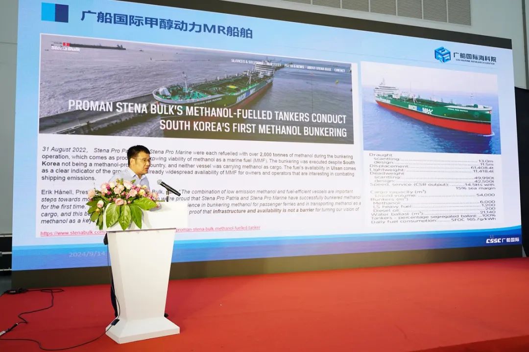 广东广船国际海洋科技研究院有限公司主任设计师李腾飞则聚焦于《首台套甲醇船舶装备研发与船用设备国产化发展之路》。他深入分析了甲醇动力船舶的现状和发展趋势,探讨了国产化进程中的挑战与成就,为与会者揭示了甲醇动力船舶的市场前景和国产化发展的重要性。