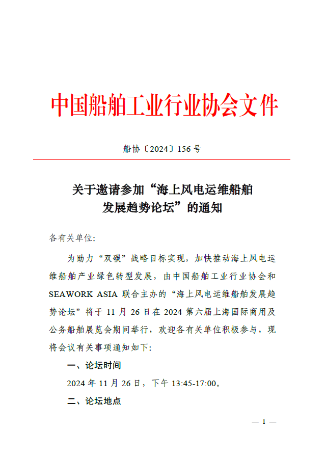 关于邀请参加“海上风电运维船舶发展趋势论坛”的通知