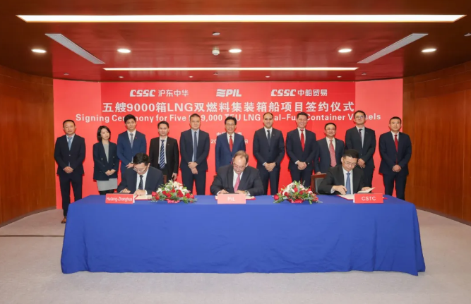 11月5 日,公司与太平船务有限公司(Pacific International Lines (Private) Ltd.)在上海签订5艘9000TEU液化天然气(LNG)双燃料动力集装箱船建造合同。这是继今年8月16日太平船务首次与公司签订5艘13000TEU LNG双燃料动力集装箱船新船建造合同,在不到3个月的时间里,双方再次握手,达成新的合作,充分体现了这家新船东对公司雄厚研发实力、卓越品质品牌和良好市场口碑的高度认可。