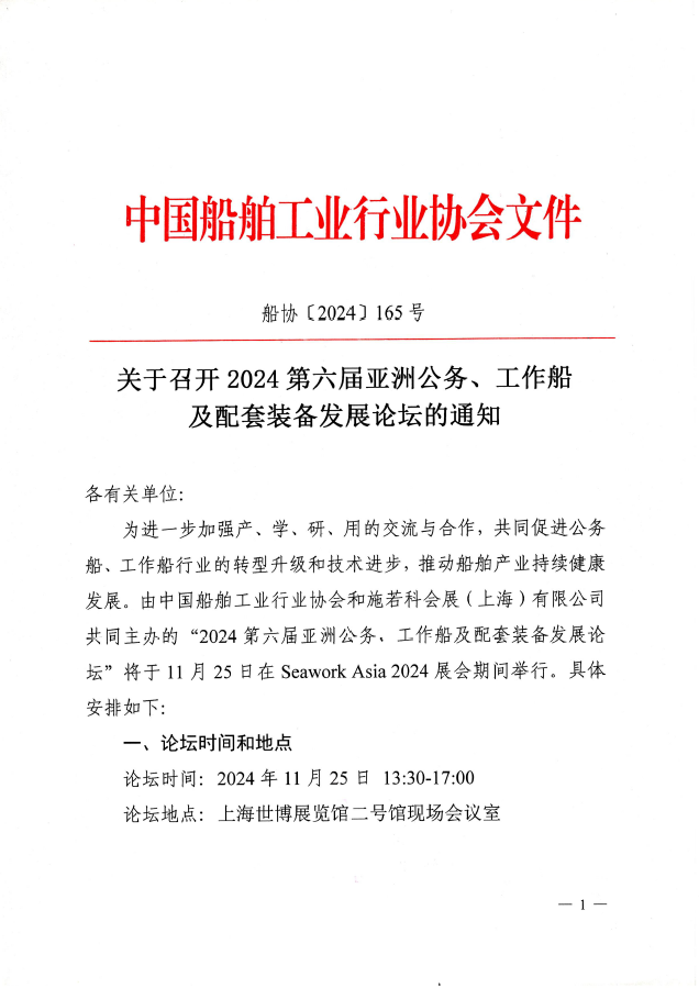 关于召开2024第六届亚洲公务、工作船及配套装备发展论坛的通知