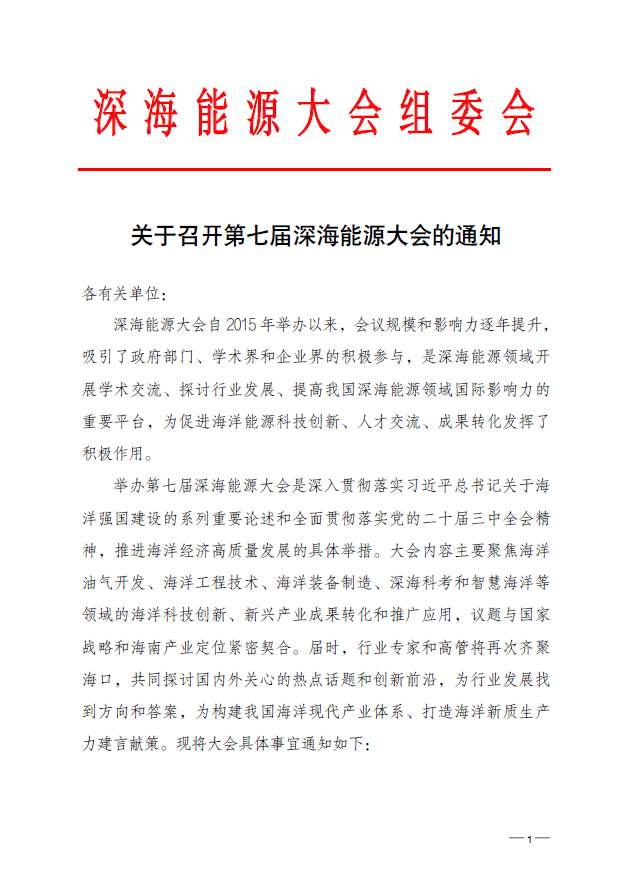 关于召开第七届深海能源大会的通知