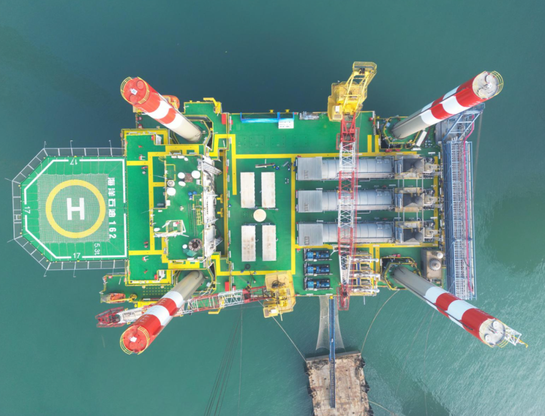 平台原升降系统、主发电机组、应急发电机组利旧使用,对46个舱室进行结构改造和加强,对1600平方米二层甲板及艉飘甲板重新设计制造和安装。通过降低二层甲板高度、采用高强度钢材等措施,“热采一号”实际空船重量及平台结构强度等指标高于预期,展现了中国海油自主设计、研发、建造、运营注热平台的能力。