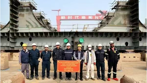 近日,新时代造船1#295000吨油船船体结构开始进坞合拢组装。