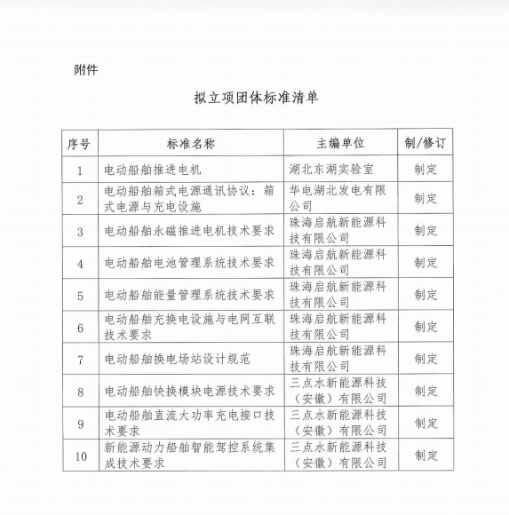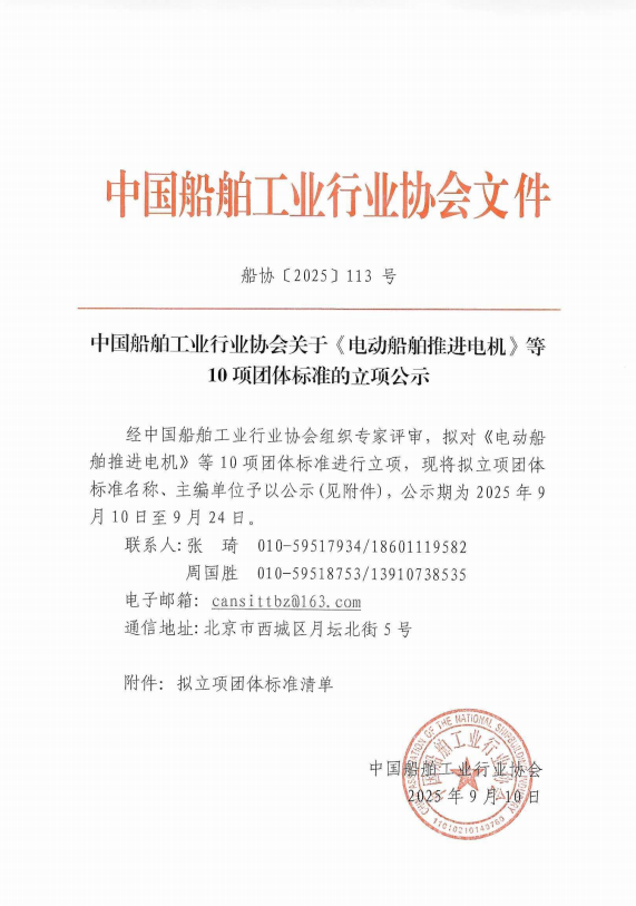 中国船舶工业行业协会关于《电动船舶推进电机》等10项团体标准的立项公示