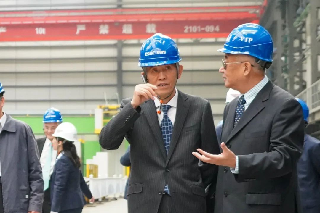 升旗仪式结束后,公司历任老领导在王琦、陈刚和经理班子成员陪同下,现场参观了薄板中心、集配中心、国产首艘大型邮轮以及公司展厅。在随后的座谈会上,老领导纷纷对公司取得的佳绩表示肯定,并对公司进一步高质量转型发展提出宝贵的意见建议。