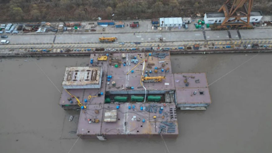 H1513艏半船是外成人电影 首次进行异地建造的半船。在公司各级领导的大力支持、船东船检的共同努力下,公司各部门团结一致,奋力攻坚,克服了新团队磨合、设备设施有限、疫情及寒潮天气等不利因素,确保了艏半船的良好出坞状态和完整性,为月底本部整船大合拢以及分公司7000TEU集装箱船的连续建造奠定了坚实基础。